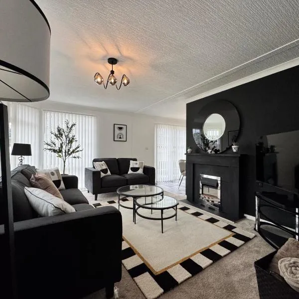 The Lodge - 2 acres of garden with hot tub and fire pit and BBQ queda aproximadamente a 32 km de The Apex y ofrece alojamiento con vista al lago, una terraza y patio.