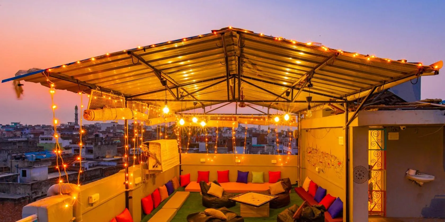 La habitación individual del hotel muy comoda. Cama cómoda y aire acondicionado funcionante. El rooftop frente al taj majal con unas vistas inmejorables del atardecer, con buen ambiente para relajarte. El personal muy amable y atentos siempre dispuestos a ayudar y a dar consejos para que tu estancia en Agra se haga más amena. Compartimos con el resto de viajeros y el staff una comida hecha por el mismo hostel la cual fue invitada por ellos muy rica y autentica del lugar, muy agradecidos.