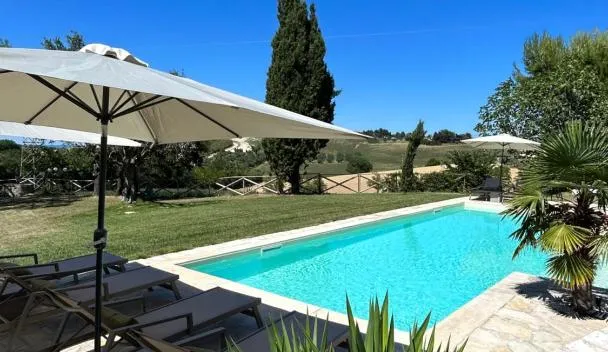 Ofreciendo vista al jardín, Casa Civetta en Castel Colonna tiene hospedaje, una alberca al aire libre por temporada, un jardín, una terraza, un bar y instalaciones para parrilladas.
